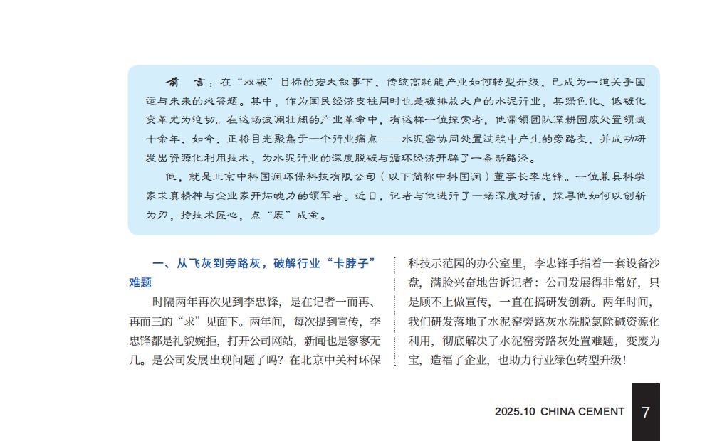 对话中科国润李忠锋:破解水泥窑旁路灰困局的技术匠心